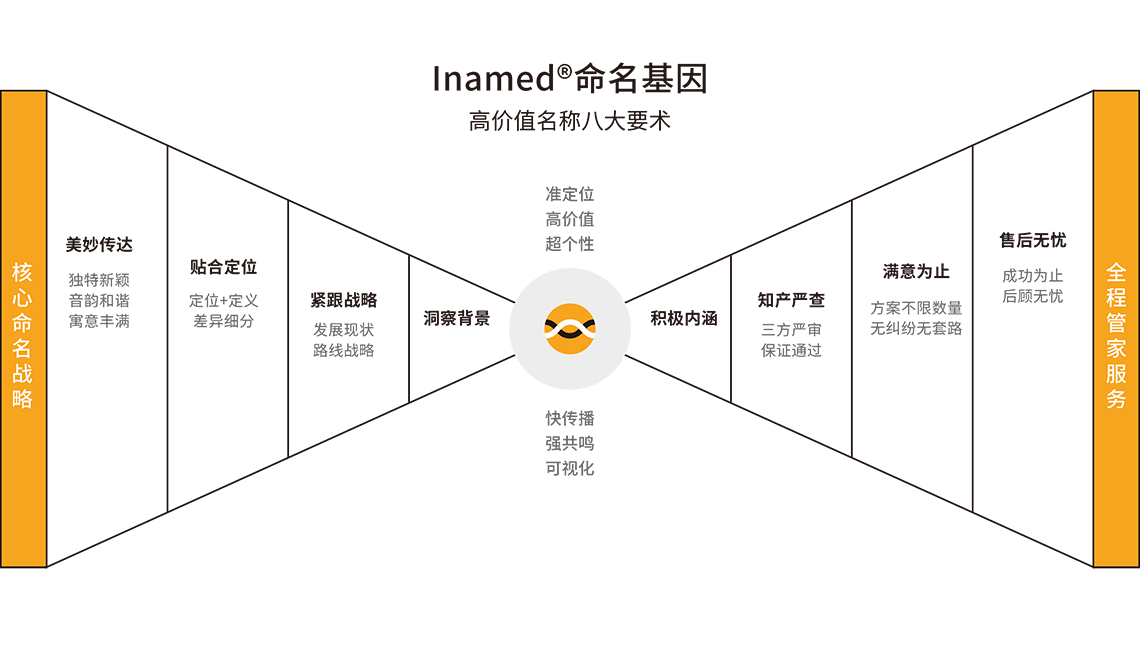 根據(jù)目標(biāo)群體需求特征以及品牌起名定位,通過字義、字音、字性等多種方法,創(chuàng)意命名方案;對名稱進行商標(biāo)注冊系統(tǒng)篩查等。